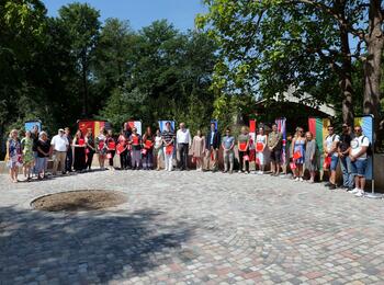 Internationales Sommercamp in Mannheim vom 10.-17. Juli 2022. Bau des Gartens der Partnerstädte im Luisenpark Mannheim mit jungen Gärtner*innen, Auszubildenden und Freiwilligen aus Mannheim und seinen Partnerstädten Berlin Charlottenburg-Wilmersdorf, Bydgoszcz - Polen, Chişinău - Republik Moldau, Haifa - Israel, Klaipėda - Litauen, Riesa, Swansea - Großbritannien, Windsor - Kanada. Ein Projekt der Stadt Mannheim in Zusammenarbeit mit dem Luisenpark Mannheim und unterstützt durch die BUGA-Gesellschaft.