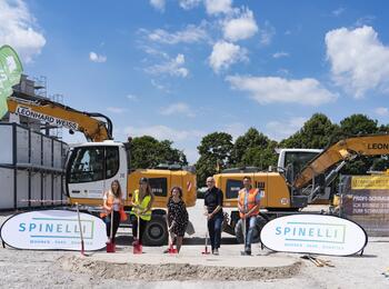 Janna Schwarz (Leonhard Weiss), Angelika Bode (MWSP), Bürgermeisterin Prof. Dr. Pretzell, Geschäftsführer der MWSP Achim Judt und Thomas Liebler (Leonhard Weiss)