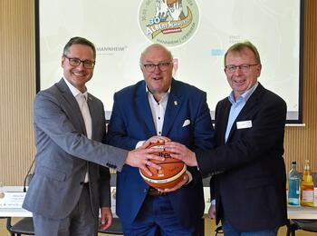 Von links nach rechts: Ralf Eisenhauer, Sportbürgermeister der Stadt Mannheim, Ingo Weiss, Präsident des Deutschen Basketball Bundes und Matthias Baaß, Bürgermeister der Stadt Viernheim.