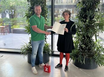 Bürgermeisterin Prof. Dr. Diana Pretzell spricht Jan Wallendorff im Namen von Ministerpräsident Winfried Kretschmann eine öffentliche Anerkennung für die versuchte Rettung eines Menschen in Lebensgefahr aus und übergab die zugehörige Urkunde.