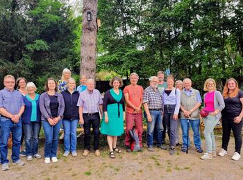 Umweltbürgermeisterin Prof. Dr. Diana Pretzell mit einigen der ehrenamtlichen Naturexpertinnen und Naturexperten, die den Tag der Artenvielfalt möglich machen.
