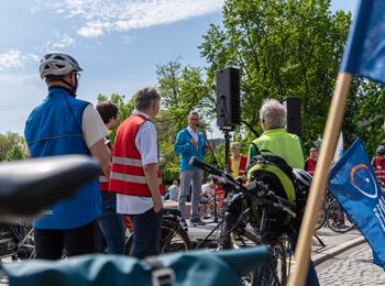 Die Radparade zum Auftakt von STADTRADELN 2023 führte vom Wasserturm zur Bezirkssportanlage.