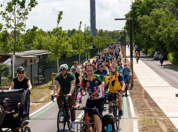 Die Radparade als Auftakt von STADTRADELN 2023 führte über die neue Radschnellverbindung 15 durch die Feudenheimer Au.