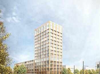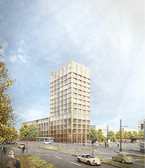 An der Kreuzung Rollbühlstraße / Auf dem Sand ist ein 60 Meter hoher Landmark-Hochpunkt mit 13.000 Quadratmeter Bürofläche vorgesehen, der vom Freiburger Architektenbüro Hetzel+Ortholf geplant wird.