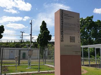 Die Klimastation in der Schlossgartenstraße misst im Zehn-Minuten-Takt Klimadaten in Mannheim. Eine Informationsstele, die mit einem QR-Code versehen ist, bietet nun die Möglichkeit diese Echtzeitdaten digital abzurufen.