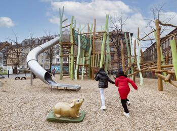 Der Neumarkt in der Neckarstadt-West stellt heute eine ökologisch und stadtklimatisch wirksame Freifläche und einen inklusiven Quartiersmittelpunkt dar.