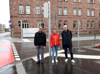 Baubürgermeister Ralf Eisenhauer; Irina Rabenseifner, MWSP-Projektleitung TURLEY, und MWSP-Geschäftsführer Achim Judt (v.l.) bei der Öffnung der Heinrich-Witt-kamp-Straße auf TURLEY.