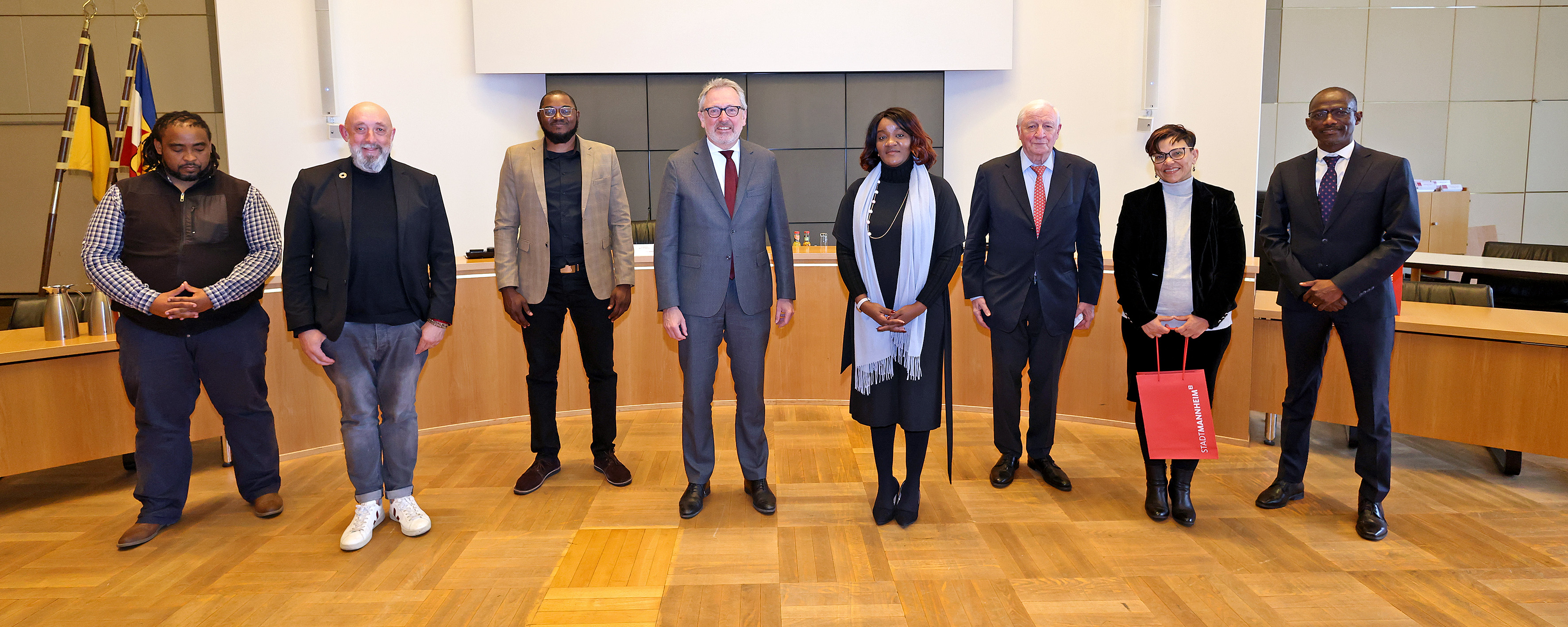 Im Bild von links nach rechts: Christian Specht, Erster Bürgermeister und ÖPNV-Dezernent der Stadt Mannheim, Prof. Dr. Diana Pretzell, Bürgermeisterin der Stadt Mannheim, Marcus Geithe, Geschäftsführer der MV Mannheimer Verkehr GmbH, sowie Moritz Feier, Pressesprecher der Rhein-Neckar-Verkehr GmbH.