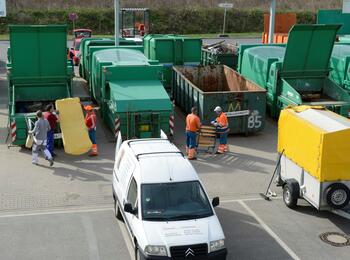 Oberbürgermeister Christian Specht lässt sich die Funktionen des neuen Fahrzeugs erklären