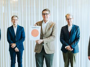 Auf dem Bild: Marcus Augsburger (Leiter der Geschäftsstelle Generalsanierung Nationaltheater Mannheim), Christian Hauss (Architekt Nationaltheater Mannheim), Bürgermeister Michael Grötsch, Albrecht Puhlmann (Intendant Oper), Prof. Peter Schuck (Architekt Metron Vilshofen GmbH)