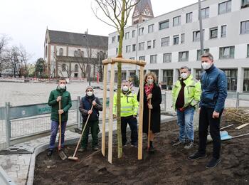 Am Sonntag, den 30. Januar 2022, fand erstmals auch in Mannheim die in Polen seit 30 Jahren bekannte Spendenaktion des „Großen Orchesters der Weihnachtshilfe“ statt. Hier Stadrätin Wellenreuther mit den Veranstaltern auf der Bühne für die Online-Übertragung.