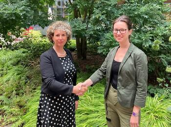 Erste Bürgermeisterin Prof. Dr. Diana Pretzell (links) wünscht der neuen Leitung der Unteren Forst- und Naturschutzbehörde, Dina Scheffer, zum Amtsantritt alles Gute.