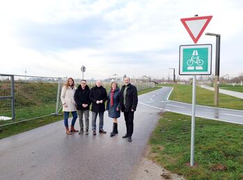 v.l. Eigenbetriebsleiterin Stadtraumservice Alexandra Kriegel, Bürgermeister Ralf Eisenhauer, Oberbürgermeister Christian Specht, Erste Bürgermeisterin Prof. Dr. Diana Pretzell, BUGA 23-Geschäftsführer Michael Schnellbach