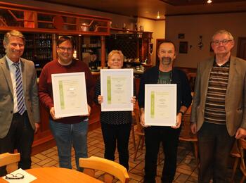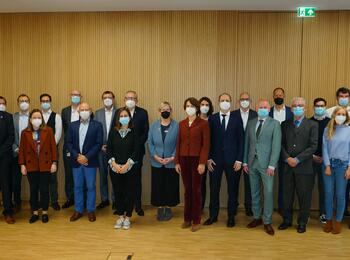 Das Herbsttreffen der Klimaschutz-Allianz, bei dem vier neue Mitgliedsunternehmen begrüßt werden konnten. Darüber freuen sich auch Bürgermeister Dirk Grunert (3. von links) und Oberbürgermeister Dr. Peter Kurz (mittig).
