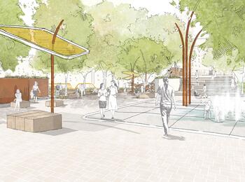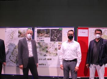 Stellten gemeinsam die Siegerentwürfe im Wettbewerbsverfahren zur Neugestaltung des Swanseaplatzes vor (von links): Landschaftsarchitekt und Preisgerichtsvorsitzender Christof Luz, Leiter der Stadtplanung Klaus Elliger, Baubürgermeister Ralf Eisenhauer und Verfahrensbetreuer Thomas Wirth vom Landschaftsplanungsbüro Arc.Grün.