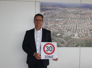 Bürgermeister Ralf Eisenhauer schloss sich mit seiner Unterschrift der Initiative des Deutschen Städtetags an und fordert damit mehr Eigenverantwortung für Kommunen bei der Festlegung von Tempolimits.
