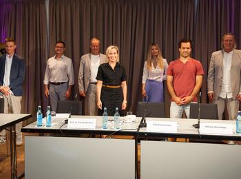 Freuen sich auf die Verleihung des SportAwards 2021 im November (von links): Bastian Fiedler (Geschäftsführer m:con), Ralf Eisenhauer (Sportbürgermeister Stadt Mannheim), Prof. Eckart Würzner (Vorsitzender Sportregion Rhein-Neckar e.V.), Stephanie Wirth (Geschäftsführerin der Sportregion Rhein-Neckar e.V.), Simone Schulze (S.I.M.Marketing), Nicolai Kornhass (Team Tokio) und Frank Schlageter (Projektleiter S.I.M. Marketing).