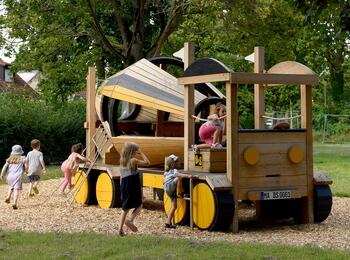 Großes Interesse am "Betonmischer" auf dem Spielplatz im Neckarauer Waldweg