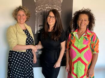 Erste Bürgermeisterin Prof. Dr. Diana Pretzell (li.) und Fachbereichsleiterin Andrea Baroncioni begrüßen Olita Steger, die neue Bezirksbürgerserviceleiterin und verantwortlich für die Bürgerservices in Neckarstadt und Feudenheim.