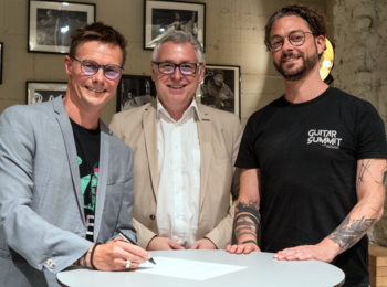 Auf dem Bild: Bastian Fiedler (Geschäftsführer des Congress Center Rosengarten), Bürgermeister Thorsten Riehle, Marco Parrillo (EO von der Ebner Media Group)