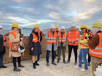 Oberbürgermeister Christian Specht und Erste Bürgermeisterin Diana Pretzell beim Presserundgang.