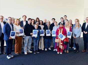 Helene Hecht-Preis-2024: Bürgermeister Thorsten Riehle mit den Preisträgerinnen Anne-Marie Geisthardt (Helene Hecht-Preis) und Camie Klein (Helene Hecht-Nachwuchspreis)