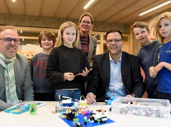Bildungsbürgermeister Dirk Grunert (l.) und Bürgermeister und IT-Dezernent Dr. Volker Proffen (r.) besuchen die Franklinschule. Sie ist eine von 48 Mannheimer Schulen, die inzwischen an das Glasfasernetz angeschlossen sind.