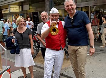 Unser Bild zeigt von links nach rechts: Anna-Lena Winkler von der Haniel Stiftung in Duisburg, Oberbürgermeister Dr. Peter Kurz, Sabine Nakelski, Referatsleiterin im Ministerium für Heimat, Kommunales, Bau und Gleichstellung in Nordrhein-Westfalen und Dr. Stefan Krämer, Stellvertretender Geschäftsführer der Wüstenrot Stiftung.