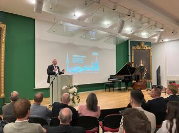 Oberbürgermeister Christian Specht beim Grußwort des 15. Mannheimer Wirtschaftsforums.