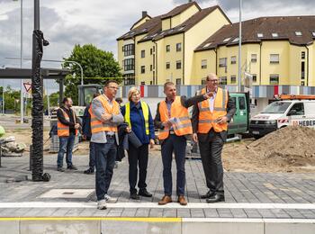 Dr. Volker Proffen, ÖPNV Dezernent Stadt Mannheim, Marianne Seitz, Gemeinderätin, Frank Dommasch, Bereichsleiter Infrastruktur rnv GmbH, Marcus Geithe, Geschäftsführer MV Verkehr GmbH