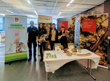 Beim "Umweltspieltag" der Rhein-Neckar-Löwen präsentierte sich die Untere Forstbehörde mit kreativen Mitmachaktionen.
