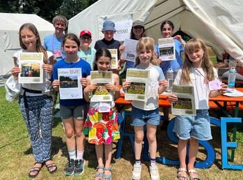 Bei einer Stadtführung zeigen die teilnehmenden Kinder sowie Lena Jöst (Spielmobil) und Klemens Hotz, Abteilungsleiter der Jugendförderung, Bildungsbürgermeister Dirk Grunert die „Luisenstadt“.