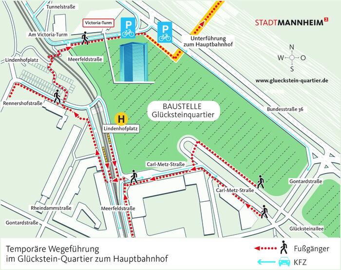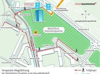 v.l.: Karmen Strahonja, Geschäftsführerin Stadtmarketing Mannheim, Georg Jäger und Gerhard Lakus vom Infobüro Planke, Steffen Magin, Bauleiter rnv, Anja Ehrenpreis, Baustellenmanagement Stadt Mannheim