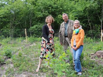 Dank für die Spende: Erste Bürgermeisterin Prof. Dr. Diana Pretzell mit dem SDW-Vorsitzendem Sebastian Eick und Andrea Potrafke, Geschäftsleitung von City Decks.
