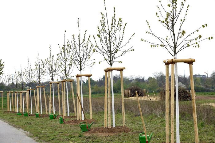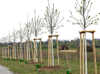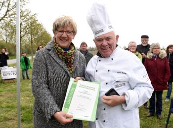 Bürgermeisterin Felicitas Kubala überreicht Klaus Mathey vom "Club der Berufsköche MA-LU e.V." eine Urkunde als Dank für die Baumspende