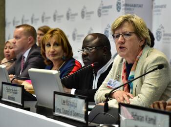 Auf dem Bild: Scheidende Kunsthallendirektorin Dr. Ulrike Lorenz (Mitte), Kunststaatssekretärin B-W Petra Olschowski (links), Oberbürgermeister Dr. Peter Kurz (rechts) sowie die Vorsitzende des Förderkreises für die Kunsthalle Mannheim Verena Eisenlohr.