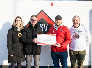 Sportbürgermeister Ralf Eisenhauer (2.v.l.) überreichte für Förderurkunde an den SSV Vogelstang.