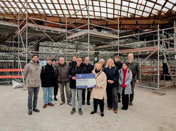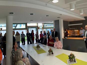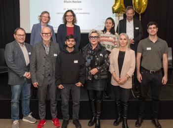 Baubürgermeister Ralf Eisenhauer mit Ortskuratorin Helen Heberer und Mitgliedern des Vereins Multihalle Mannheim e.V..