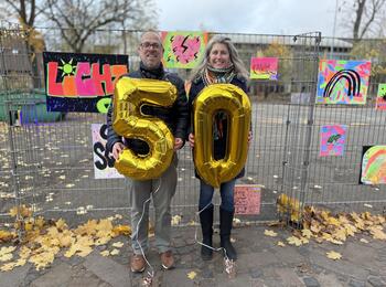 Unser Bild zeigt Oberbürgermeister Christian Specht zusammen mit Inge Herold, der Kuratorin der Ausstellung.