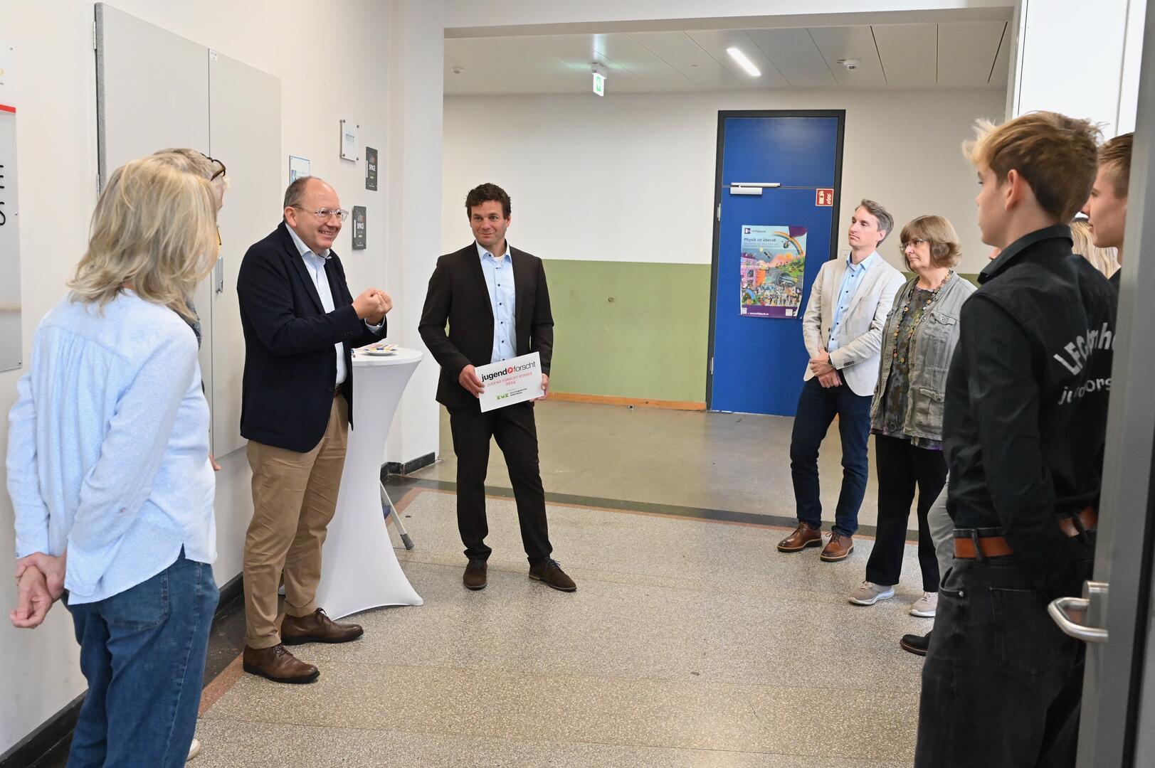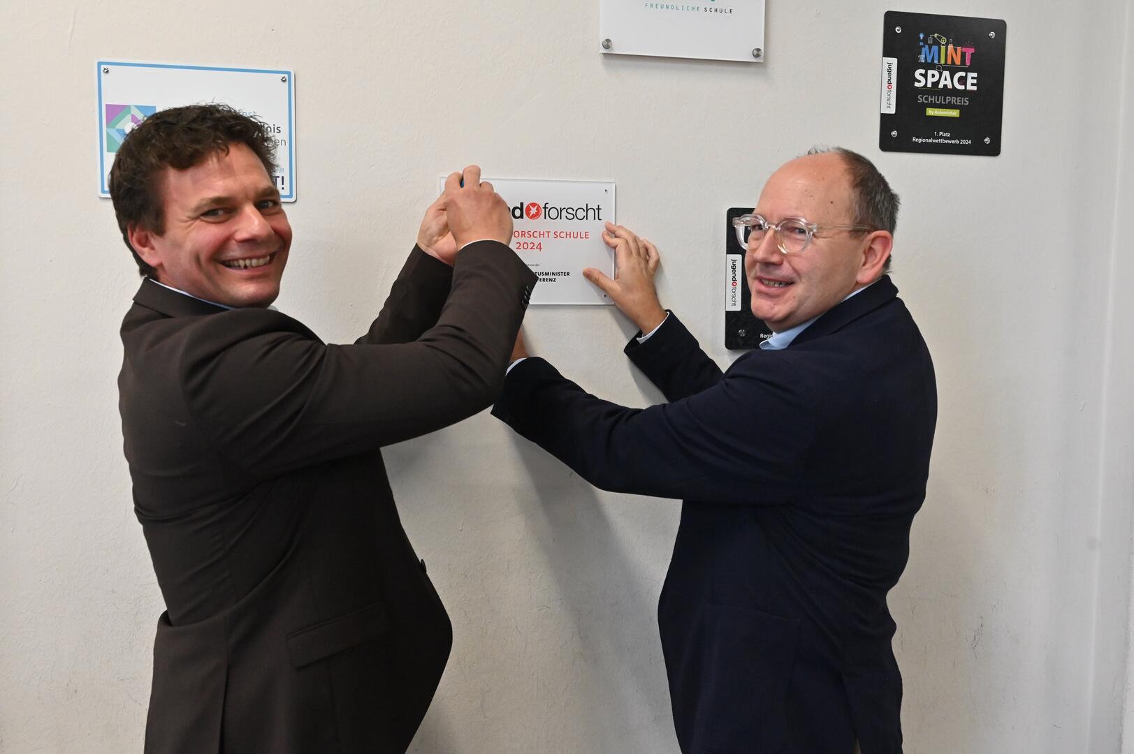 Bei einer kleinen Feier brachte Oberbürgermeister Christian Specht gemeinsam mit Schulleiter Stefan Weirether die dazugehörigen Plaketten persönlich im Schulgebäude an. Dabei lobte er die Schule für ihr vorbildliches Engagement in den Bereichen Forschung und Vielfalt und betonte, wie wichtig es sei, den Schülerinnen und Schülern nicht nur Wissen zu vermitteln, sondern auch Werte wie Respekt, Offenheit und soziales Engagement zu fördern. Er hob hervor, dass das Ludwig-Frank-Gymnasium mit diesen Auszeichnungen eine Vorreiterrolle in Mannheim einnimmt; einer Stadt, die schon immer von der Vielfalt und dem Erfindungsreichtum seiner Bürgerinnen und Bürger lebt.