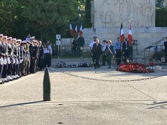 Am 8. Mai nahm Oberbürgermeister Christian Specht am offiziellen Gedenken zum Ende des Zweiten Weltkriegs teil. Er legte zusammen mit seiner Amtskollegin, Oberbürgermeisterin Josée Massi, einen Kranz am Ehrendenkmal der Gefallenen nieder: „Es war für mich ein besonderer Moment, ein so bedeutendes Ereignis zu ehren. Vor 79 Jahren endete der dunkelste Moment in der Geschichte Deutschlands - ein Erbe, das wir Deutschen jeden Tag mit uns tragen. Es war bewegend, bei der Zeremonie heute dabei zu sein und derer zu gedenken, die in diesem schrecklichen Krieg ihr Leben verloren haben. Aus den Trümmern des Krieges ist etwas ganz Besonderes entstanden: die Freundschaft zwischen Mannheim und Toulon, sowie zwischen Hunderten anderer deutscher und französischer Städte“, erklärte der Oberbürgermeister. Die Zeremonie wurde untermalt durch den Marinemusikcorps Toulon. Hervorzuheben ist die Teilnahme des Admirals der Marinebasis und der Veteranen aus verschiedenen Epochen.