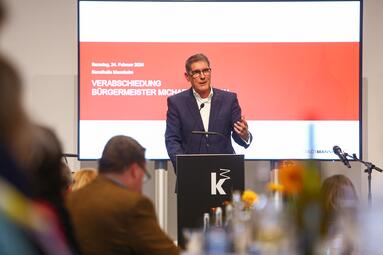 16 Jahre lang war Grötsch Bürgermeister – sein Amtsantritt zum 1. März 2008 war zugleich die Geburtsstunde des neu geschaffenen Dezernates II, dessen Aufgabenbereiche zuvor auf drei unterschiedliche Dezernate verteilt waren. Insofern stelle es eine Innovation bezüglich der Dezernatsgestaltung mit bisher ungenutzten Synergieeffekten dar – war in der damaligen Gemeinderatsvorlage zum Verwaltungsumbau zu lesen. „Die erwarteten Synergieeffekte zu erzielen, war zweifellos eine Herausforderung – manch einer sprach sogar von einer ‚Mission Impossible‘. Aber zugleich steckte in dieser Herausforderung auch eine große Gestaltungschance, die Michael Grötsch zu nutzen wusste. Ihm gelang es, die verschiedenen Bereiche miteinander zu verbinden“, betonte Oberbürgermeister Christian Specht anlässlich der Verabschiedung des scheidenden Dezernenten. Specht, der bereits als Erster Bürgermeister langjähriger Wegbegleiter von Grötsch war, erinnerte in seiner Rede an wichtige Meilensteine seiner Amtszeit. Darunter die Einführung der neuen Wirtschaftspolitischen Strategie, die neben der Bestandspflege als das „A und O“ der Strategie auch neue Kompetenzfelder wie die Medizintechnologie in den Fokus nahm. Im sozialpolitischen Bereich zählte die Überführung der Jobcenter in eine gemeinsame Einrichtung zu den Verdiensten. Sie ermöglichte es, den kommunalen Einfluss auf die Arbeitsmarktpolitik mit den Interessen der Bundesagentur zu verbinden. Mit dem Zusammenführen der Gründungszentren unter einem Dach in der mg: gmbh wurde der Grundstein für eine erfolgreiche Startup-Szene gelegt. Der Einsatz für die bisher höchste Einzelförderung von Bund und Land in Höhe von 120 Millionen Euro machte die aktuell laufende Generalsanierung des Nationaltheaters Mannheim erst möglich. Doch auch das Stadtfest, die Mannheimer Mess‘ oder Fasnachtsmarkt gehören in den Zuständigkeitsbereich des Dezernates. „Michael Grötsch zeigte sich hier stets sehr kompetent, humorvoll und bürgernah. Das hat ihm viel Sympathie der Mannheimerinnen und Mannheimer eingebracht“, so Specht.
