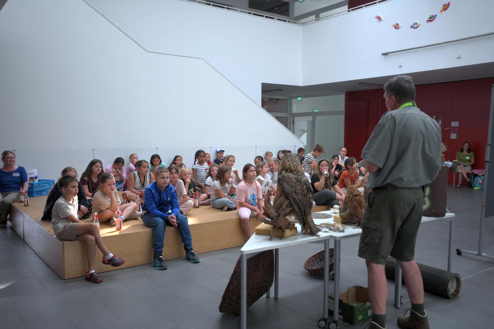 Nach einer herzlichen Begrüßung durch die Leiterin der Unteren Naturschutzbehörde Dr. Sabine Mahr wurden die Kinder von Fachleuten der Unteren Naturschutzbehörde sowie einem Vogelexperten des Vogelschutzvereins in die faszinierende Welt der Eulen eingeführt. Elena Schuster, Thomas Kilian und Tobias Schüpferling erklärten anschaulich, welche Eulenarten in Mannheim heimisch sind, welche Lebensräume sie benötigen und warum Nisthilfen eine wichtige Rolle für ihren Schutz spielen.