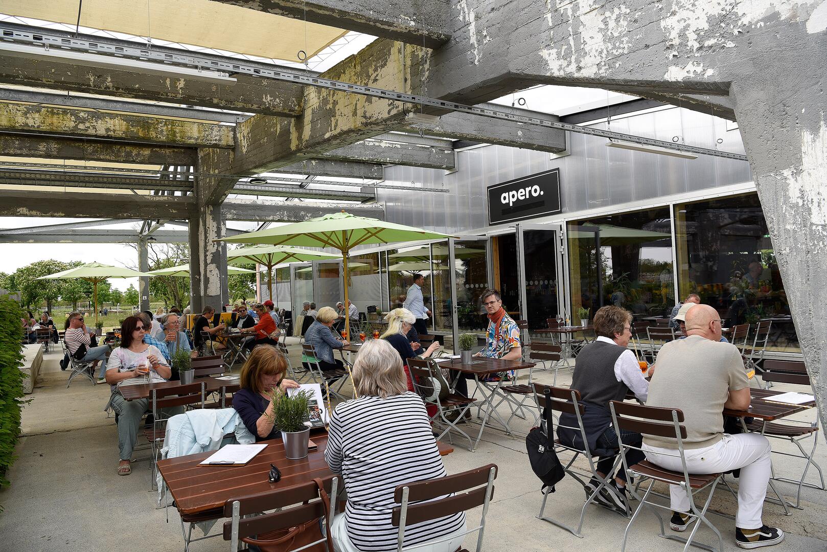 Zur Wiedereröffnung des Klimapark-West ist auch das beliebte Restaurant Apéro im Westteil der U-Halle in die Saison gestartet. Für musikalische Unterhaltung sorgte Sängerin Katia Belley mit Gitarrenbegleitung von Dee Rosario.