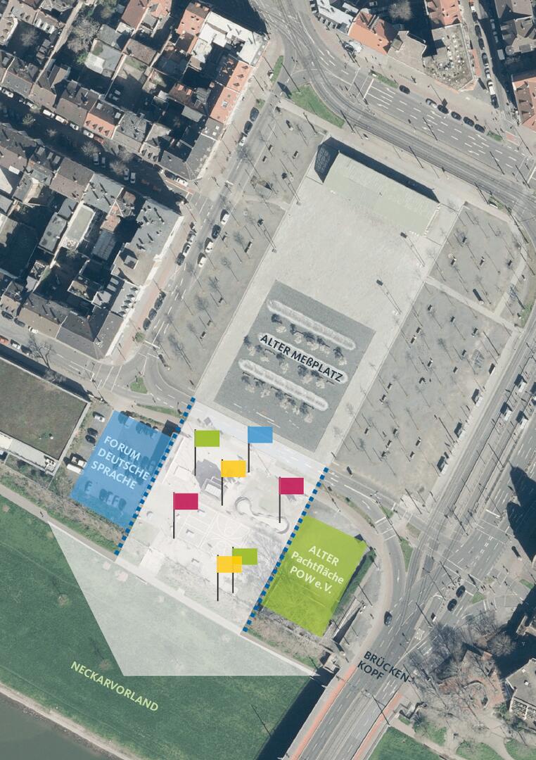 Auf dem Alten Meßplatz Süd soll ein neuer Stadtraum entstehen. Die barrierefreie Erschließung des Neckarvorlandes, Entsiegelung und Begrünung der Platzfläche stehen dabei ebenso im Fokus, wie die multifunktionale Nutzung für Jung und Alt.