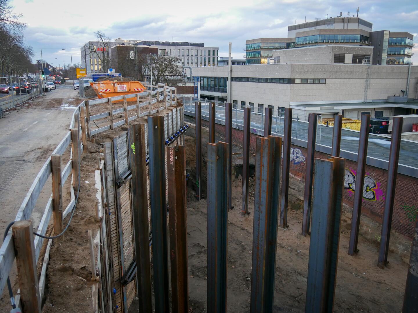 Während den Vorbereitungen für den Brücken-Neubau haben sich einige Herausforderungen ergeben: Die ursprünglich geplante Ausführung musste geändert werden, da es Probleme mit der Stahlträgerkonstruktion auf der Käfertaler Seite und der engen Baugrube gab. Auch die sogenannten Trägerbohlwände, die als Stützmauern zur Sicherung der Baugrube dienen, verursachten aufgrund ihrer Größe und Form Schwierigkeiten bei der Maschinenbefahrung. Zusätzlich waren statische Prüfungen erforderlich. Deshalb wurden die Arbeiten nach der Winterpause im Januar nicht sofort fortgesetzt. Stattdessen wurde die Planung überarbeitet, um die Situation zu verbessern. Zum Beispiel werden die Stahlträger jetzt im Werk vorgefertigt, was den Bau effizienter macht und das Risiko durch schlechtes Wetter verringert. Auch aufwändige Schutzmaßnahmen für die vielen Schweißnähte konnten eingespart werden. Die Stahlbauelemente werden so vorbereitet, dass sie während der kurzen Sperrzeiten der Deutschen Bahn eingesetzt werden können. Wann die Behelfsbrücken genutzt werden können, hängt von den weiteren Arbeiten am Verbau in Käfertal ab.