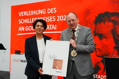 Die Journalistin und Autorin Golineh Atai hat aus den Händen von Oberbürgermeister Christian Specht den Schillerpreis 2024 erhalten. Der mit 20.000 Euro dotierte Schillerpreis ist der bedeutendste Preis der Stadt Mannheim und wird seit 1954 alle zwei Jahre an Persönlichkeiten verliehen, die durch ihr Schaffen zur kulturellen Entwicklung in hervorragender Weise beigetragen haben.