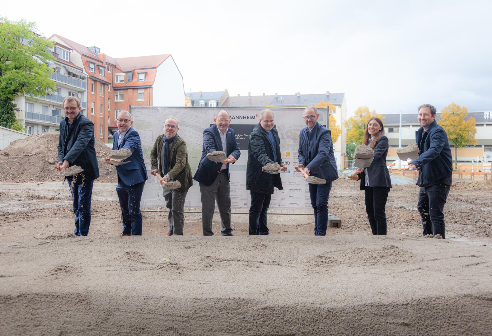 Der Baubeginn der Humboldt-Grundschule wurde am Donnerstag (10. Oktober) mit einem Spatenstich gefeiert. Oberbürgermeister Christian Specht setzte im Beisein von Bildungsbürgermeister Dirk Grunert und BBS-Geschäftsführer Peter Doberass mit dem symbolischen Akt auch ein Zeichen für Mannheims ambitionierte Ziele beim Ganztagsschulausbau.
