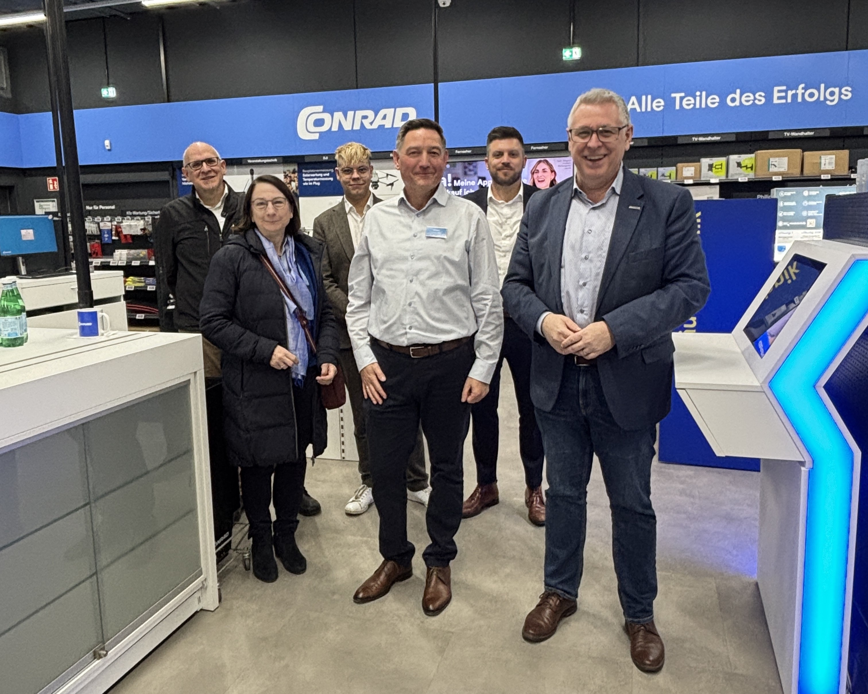 Weiter ging es zu Conrad Electronic Profistore Mannheim in der Morchfeldstraße. Geschäftsführer Bernd Käfer führte die Gruppe durch den 2023 neu eröffneten B2B-Store und erläuterte die Strategie des Unternehmens mit Profistores vor Ort, die neben der professionellen Beratung gleichzeitig den Zugriff auf die Sourcing Plattform mit zehn Millionen Produktangeboten bieten.
