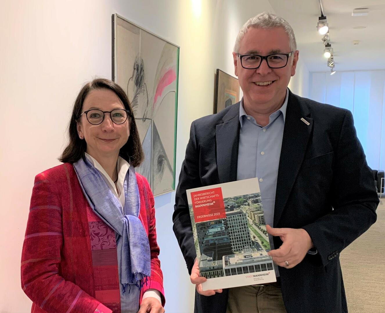 Auch 2023 war es zentrales Anliegen der Wirtschaftsförderung, Mannheimer Firmen und Betriebe aller Größen sowie Existenzgründende tatkräftig mit Erfahrung, Know-how und guten Verbindungen in die Stadtverwaltung und zu externen Kooperationspartnern zu unterstützen wie auch miteinander zu vernetzen. „Dazu zählten neben der Firmenkundenbetreuung mit einer großen Bandbreite betrieblicher Anliegen und der Entwicklung und Vermarktung von Gewerbeflächen u.a. auch die Federführung bei der Initiative Industriestandort Mannheim, die monatlichen Firmenbesuche mit der Stadtspitze und das jährliche Mannheimer Wirtschaftsforum, die Clusteraktivitäten in den strategischen Kompetenzfeldern sowie das Standortmarketing zur Stärkung der Sichtbarkeit des Wirtschaftsstandorts“, erläutert Christiane Ram, Fachbereichsleiterin Wirtschafts- und Strukturförderung.